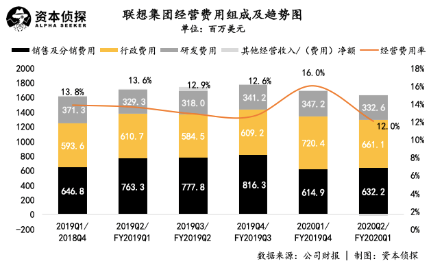 值得注意的是,在聯想的營收之路越走越寬的同時,其對于費用的控制也沒有落下。